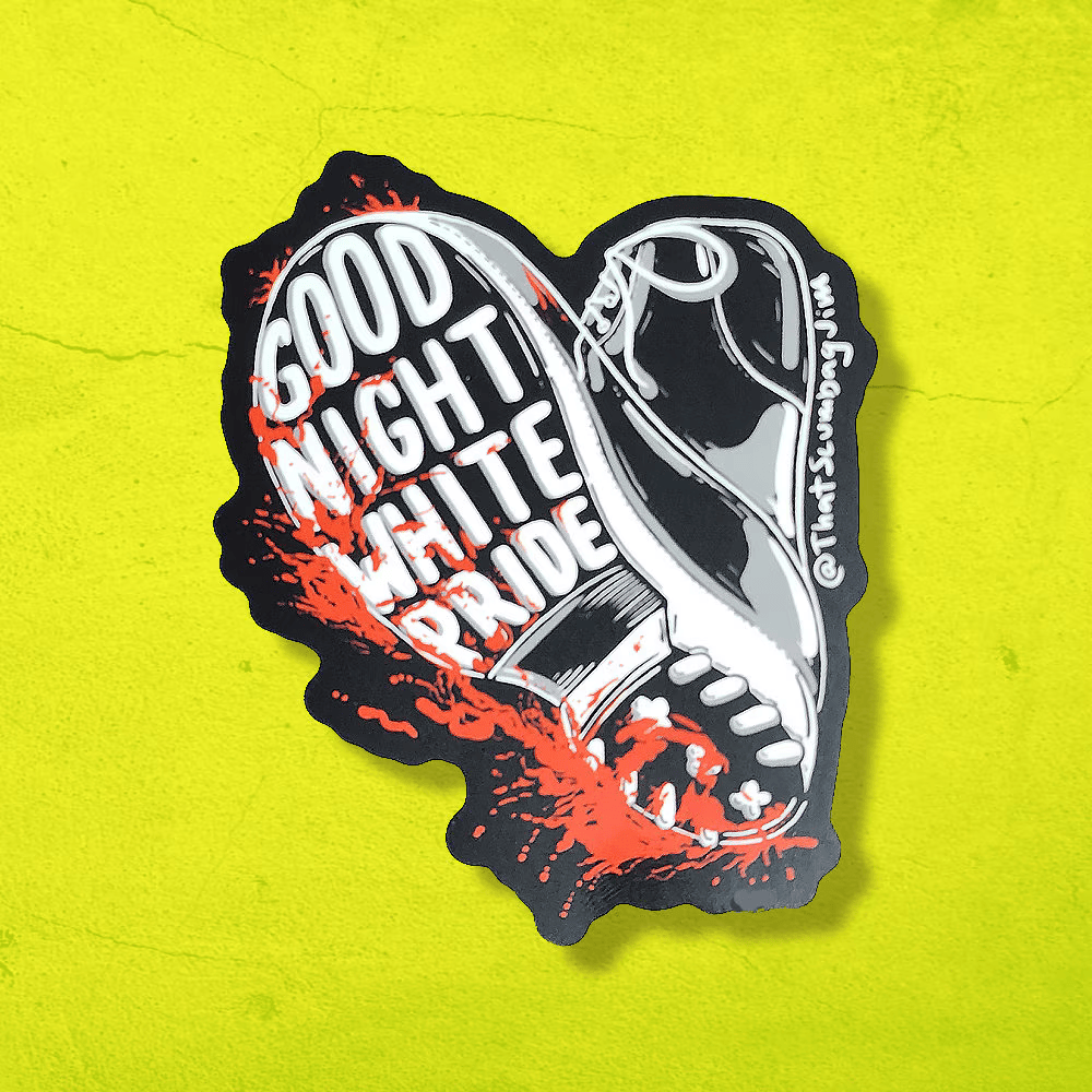 Goodnight white pride, stomp out racism sticker, anti racist, anti facist, anti white pride