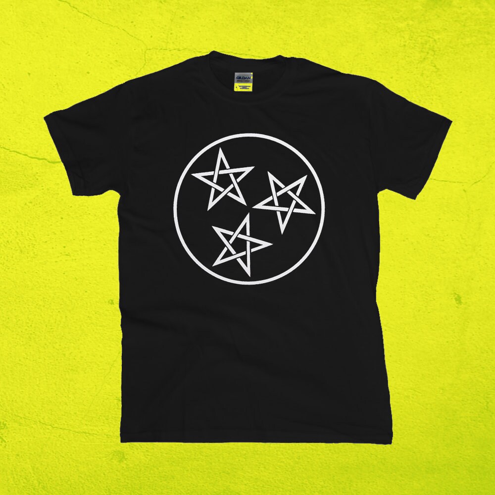 Pentagram Tri Star white ink shirt, TN flag, metalhead, punk, rock, hardcore, music
