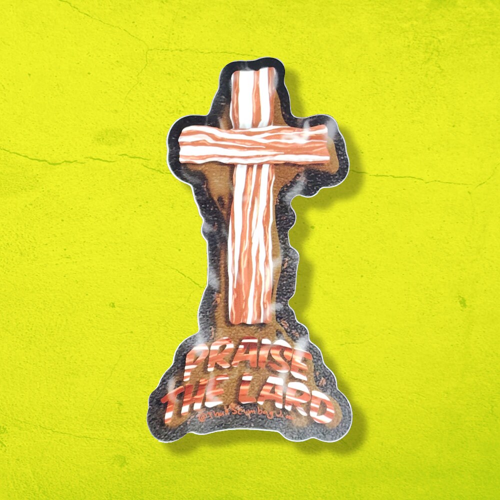 Praise the Lard Bacon Cross Sticker, holy smokes – Weatherproof Vinyl Sticker for Laptops, Water Bottles, and More