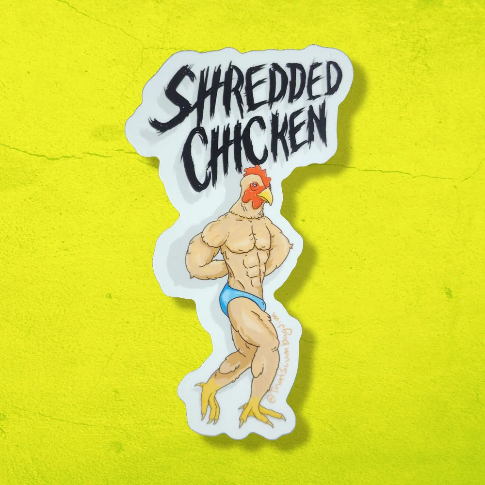 Shredded Chicken. Bodybuilder bird. Weatherproof Vinyl Sticker for Laptops, Water Bottles, and More